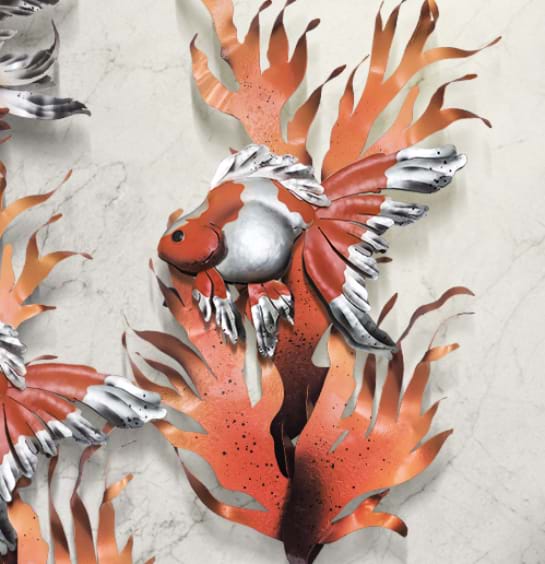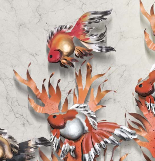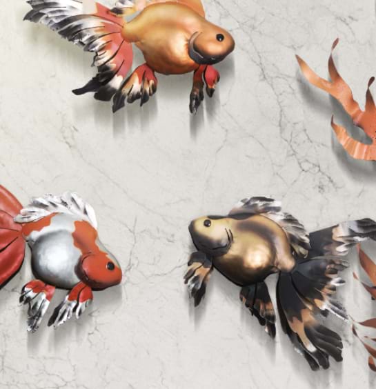 Gold Fish Grand is made up of three individual items to make one grand piece, incorporating two sea weed pieces and a set of eight gold fish.